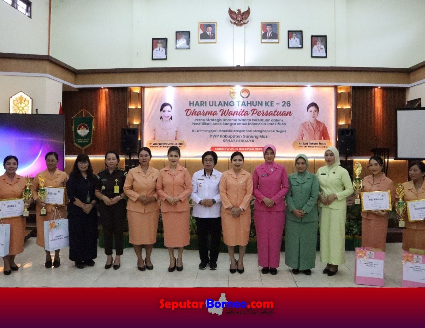 SB, KUALA KURUN - Dalam rangka menyambut Hari Ulang Tahun (HUT) Dharma Wanita Persatuan (DWP) ke-26, DWP Kabupaten Gunung Mas (Gumas) menyelenggarakan lomba vokal solo yang berlangsung di Aula Dinas Pekerjaan Umum (DPU) Gumas pada Rabu, 10 Desember 2025.