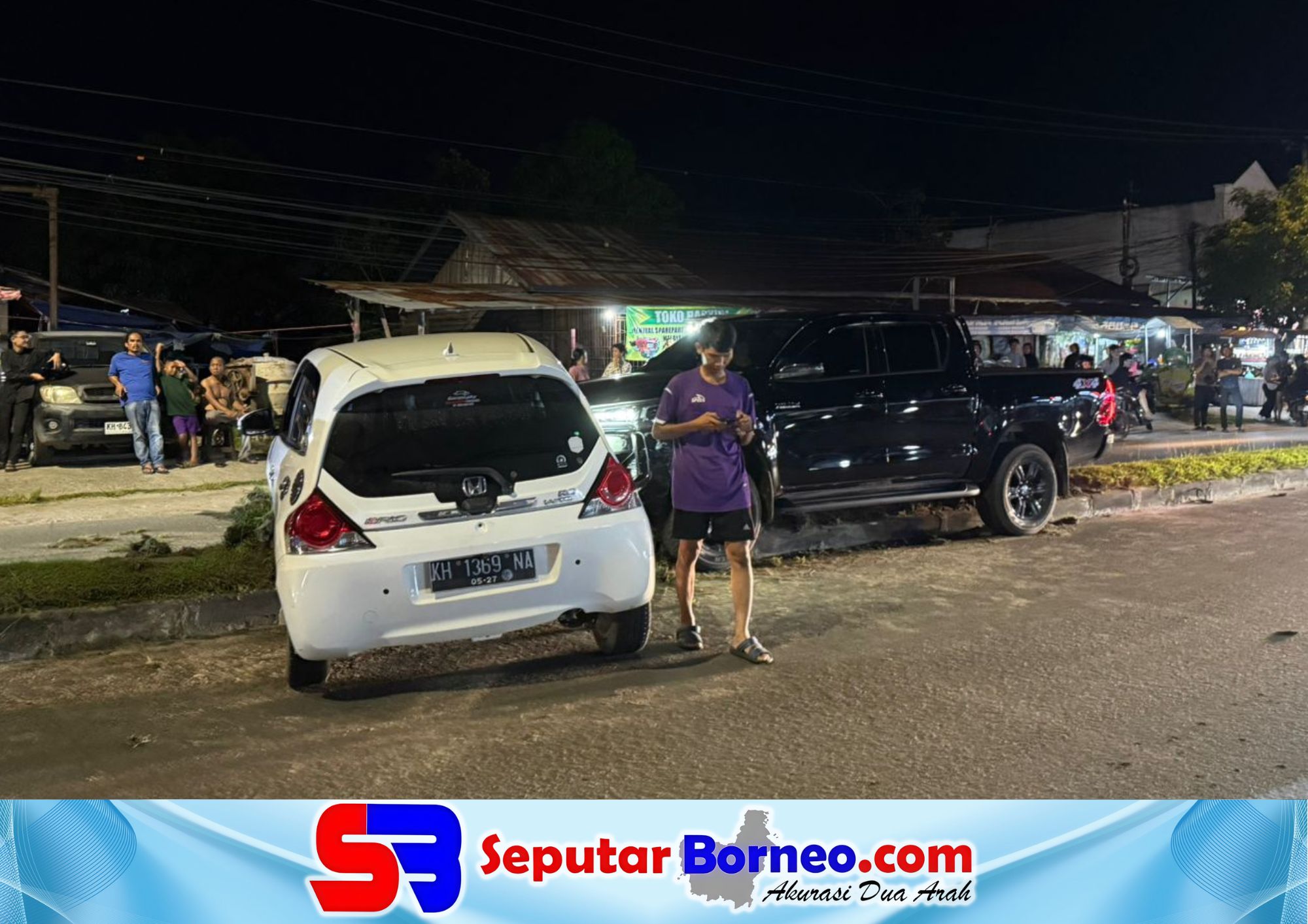Insiden tersebut melibatkan dua kendaraan, yakni mobil Honda Brio warna putih bernopol KH 1369 NA dan mobil Toyota Hilux warna hitam berplat merah KH 8294 MW.